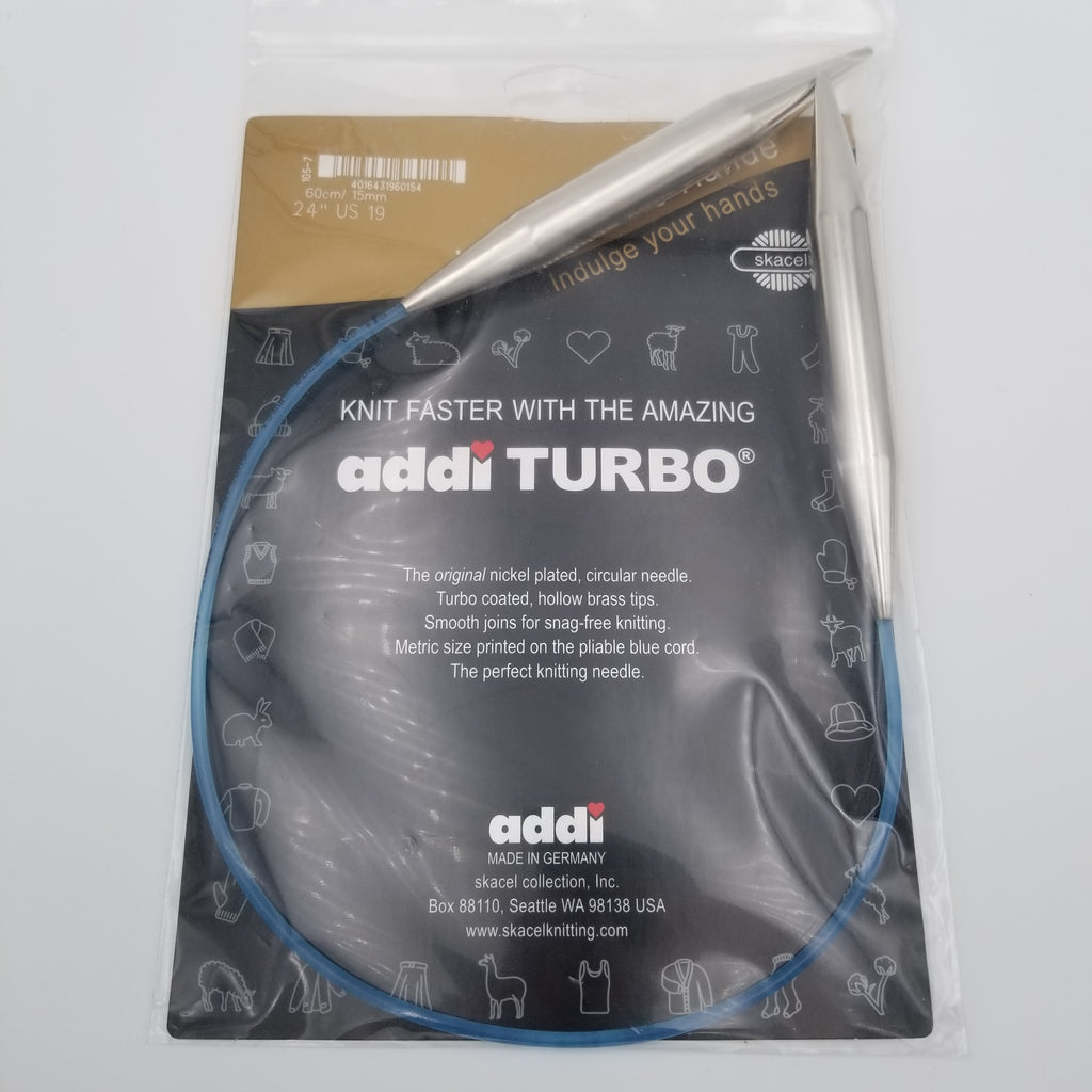 addi Turbos are a marriage of brilliant engineering with every knitter’s dream. addi’s breakthrough design features a hollow brass core that offers strength and very light weight; the turbo plating provides a smooth ride for your stitches; and addi’s cable is the one that raised the bar for everyone – – here at last is a cable that is flexible, strong and never coiled or kinked. No wonder we all love addi’s so much.
