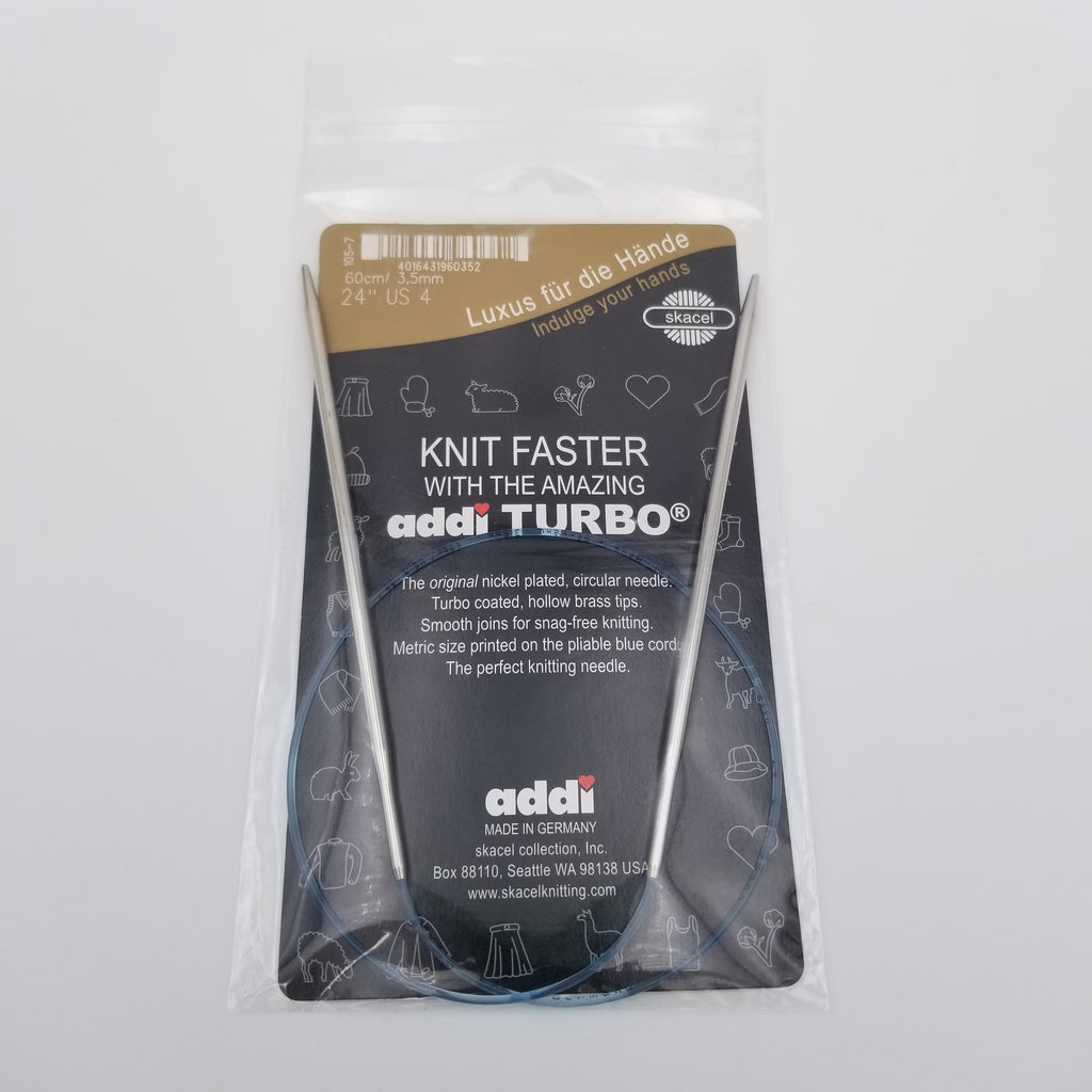 addi Turbos are a marriage of brilliant engineering with every knitter’s dream. addi’s breakthrough design features a hollow brass core that offers strength and very light weight; the turbo plating provides a smooth ride for your stitches; and addi’s cable is the one that raised the bar for everyone – – here at last is a cable that is flexible, strong and never coiled or kinked. No wonder we all love addi’s so much.