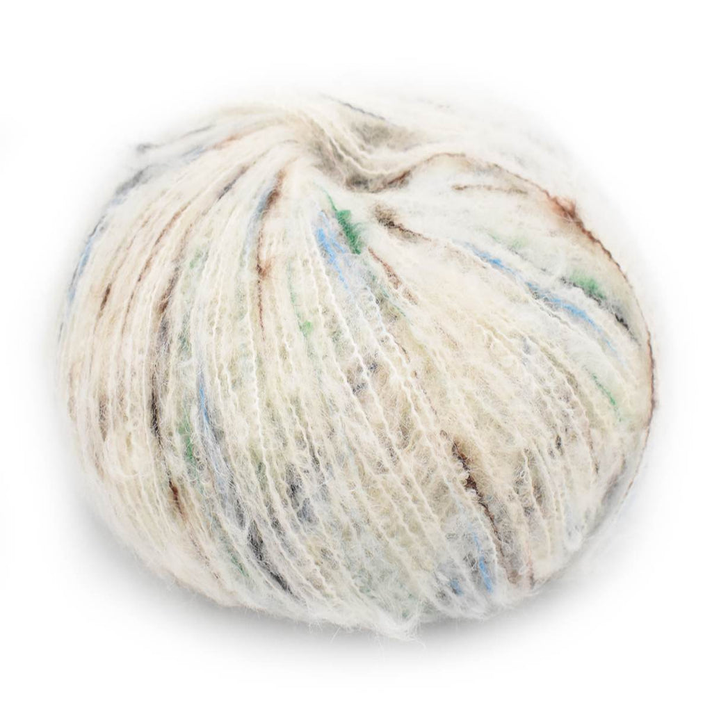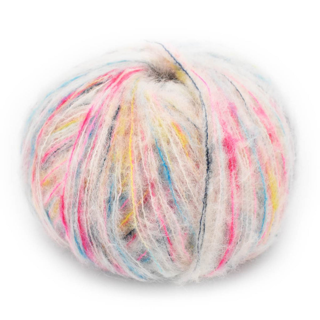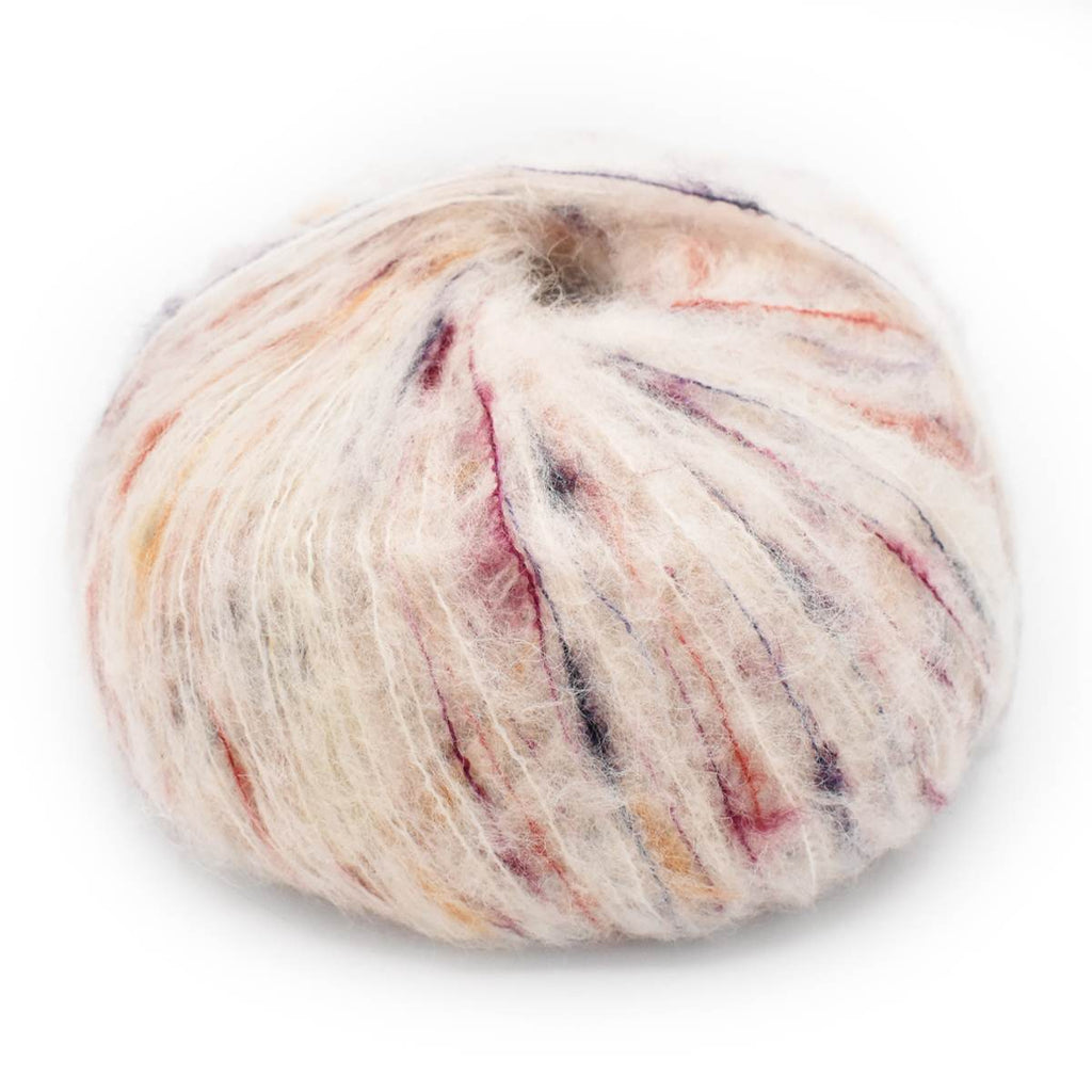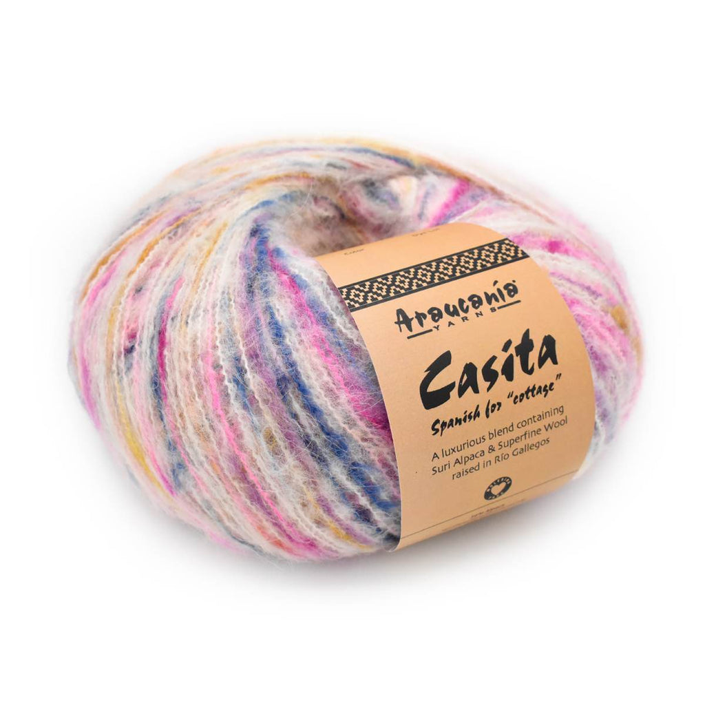 Casita is a harmonious marriage of South American fibers & Italian luxury. This unique blend of Suri Alpaca & Superfine Wool delivers an unparalleled level of quality. Beautiful shades of white are decorated with an array of contrasting color “pops” throughout. It’s a smart way to subtly work color into your wardrobe. Each colorway was carefully crafted to inspire happiness, & fun. This aran weight boasts a generous 437 yards in a 100 grams ball, making it a great fit for garments of all shapes & sizes.
