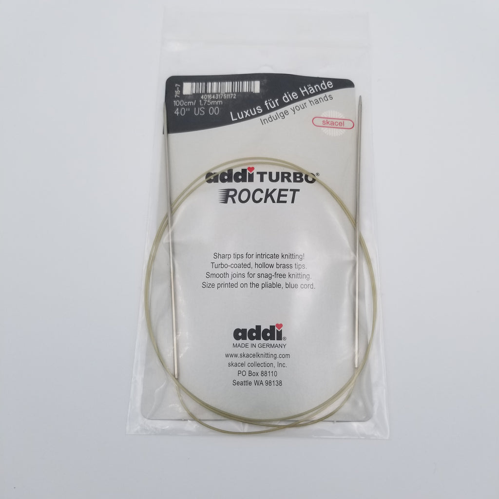 Addi Rockets take your knitting to new speeds! Here you have the sharper, longer Lace point that so many have come to love and addi’s stellar Turbo plating. Pick up your stitches with ease, and move them along quick as can be.