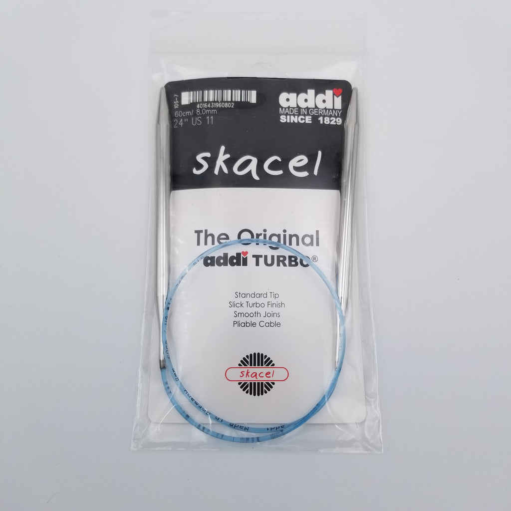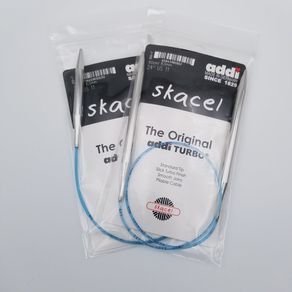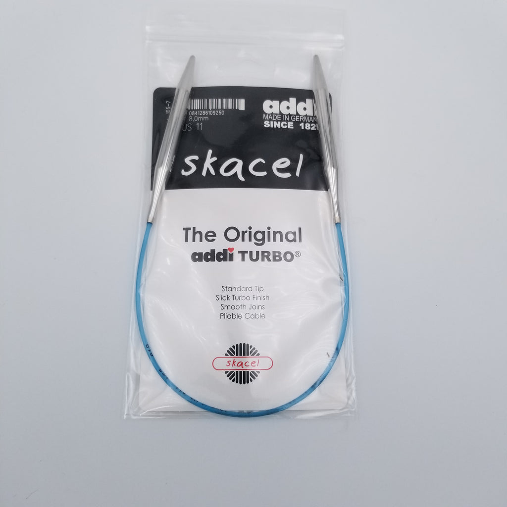 addi Turbos are a marriage of brilliant engineering with every knitter’s dream. addi’s breakthrough design features a hollow brass core that offers strength and very light weight; the turbo plating provides a smooth ride for your stitches; and addi’s cable is the one that raised the bar for everyone – – here at last is a cable that is flexible, strong and never coiled or kinked. No wonder we all love addi’s so much.