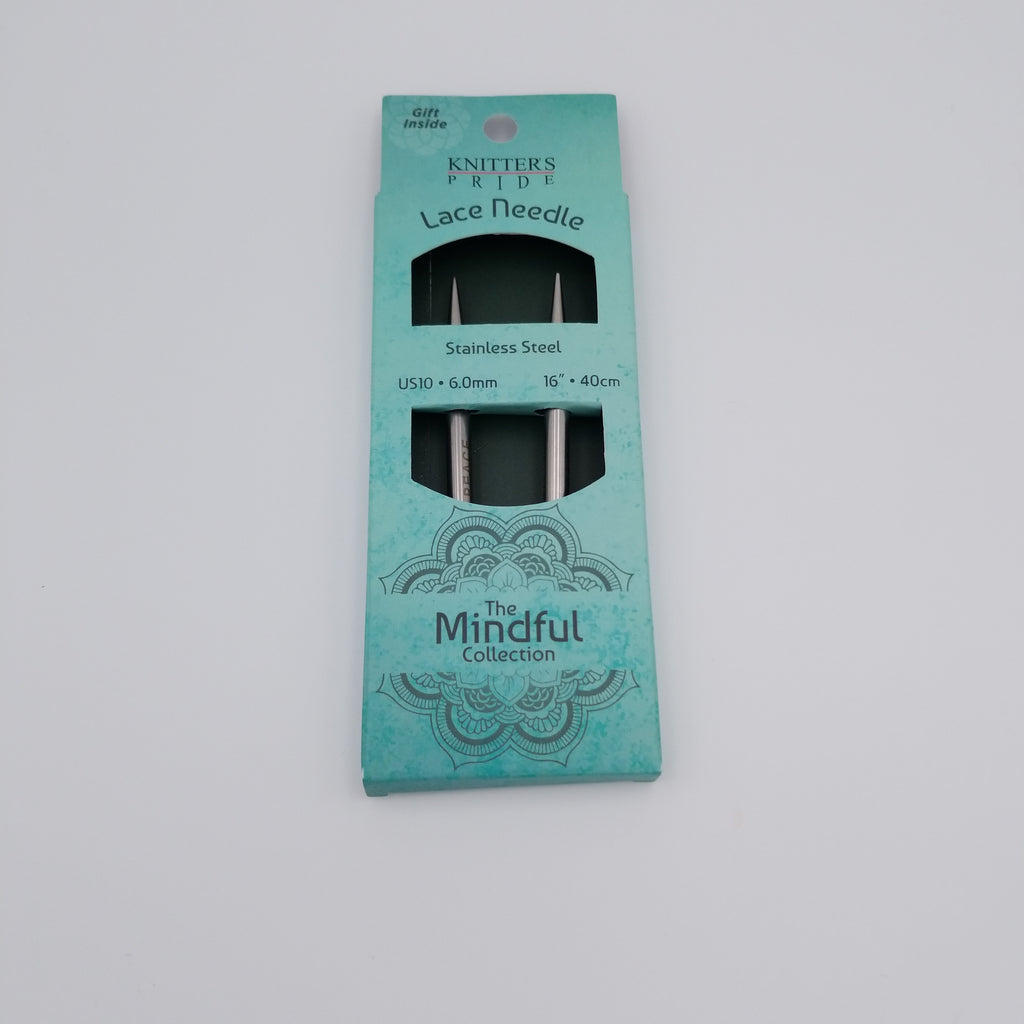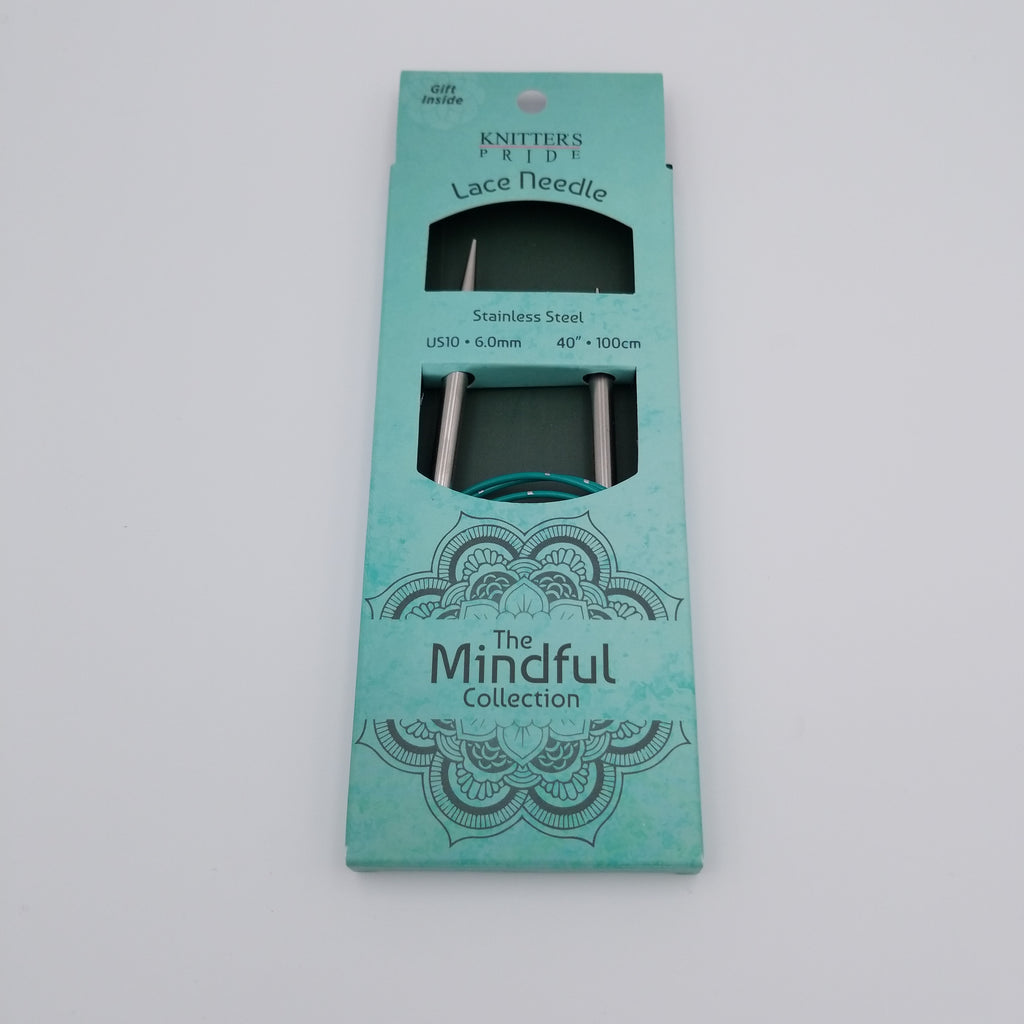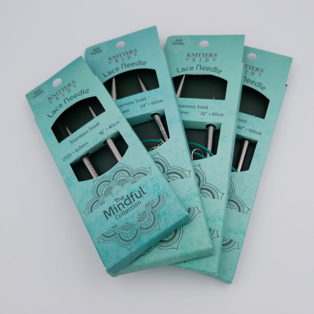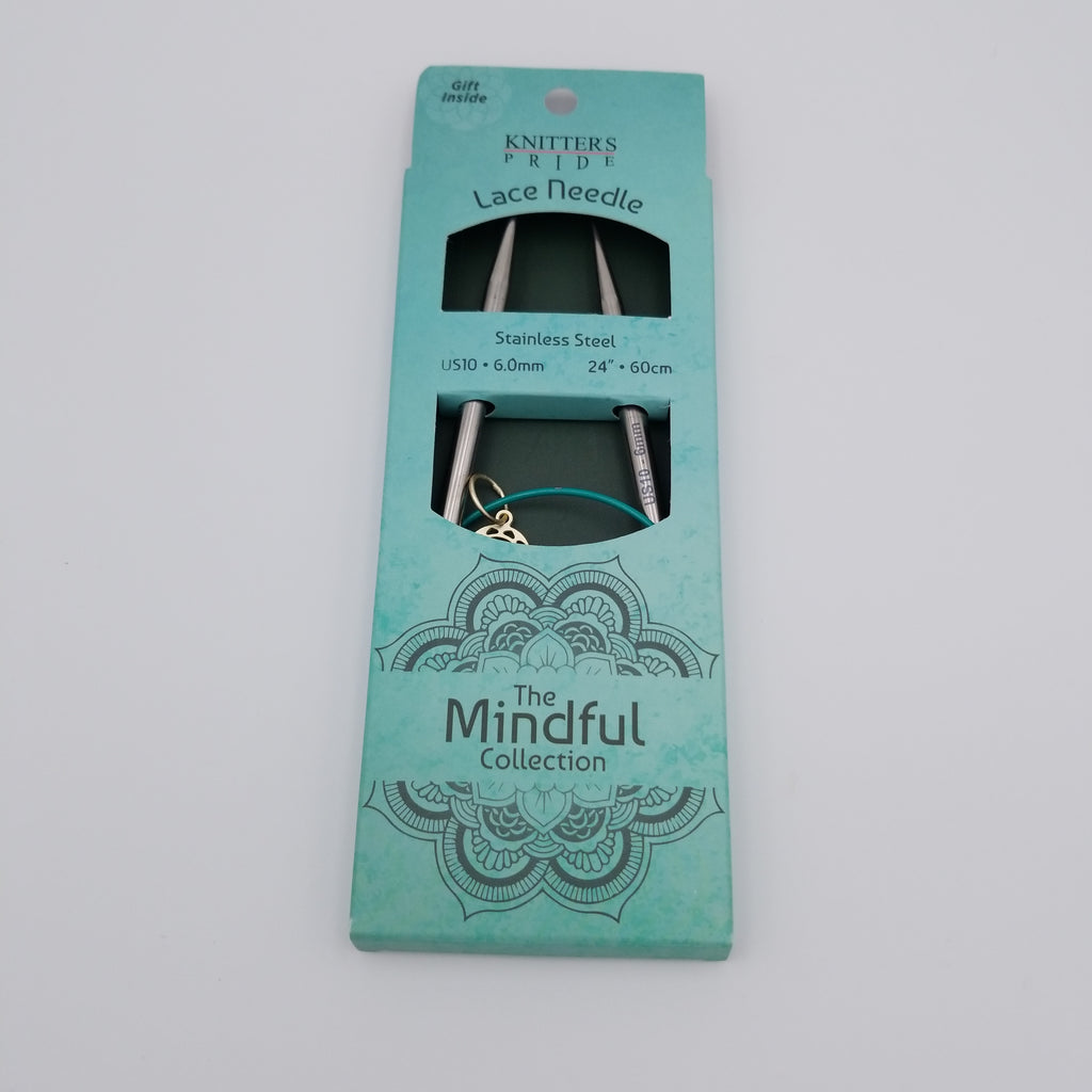 Knitter's Pride pays tribute to the healing art of knitting with The Mindful Collection Lace Needles. Inspirational words, specific to each size, are printed on the needle to encourage focus on the meditative aspect of knitting. Your spirit is soothed and reflected in your work. Made in a family owned enterprise, that supports inclusion and human rights, The Mindful Collection Lace Circular Needles are made of Stainless Steel, in an eco-compliant facility. The fine tips and no-twist glide cord create the perfect flow as you knit.