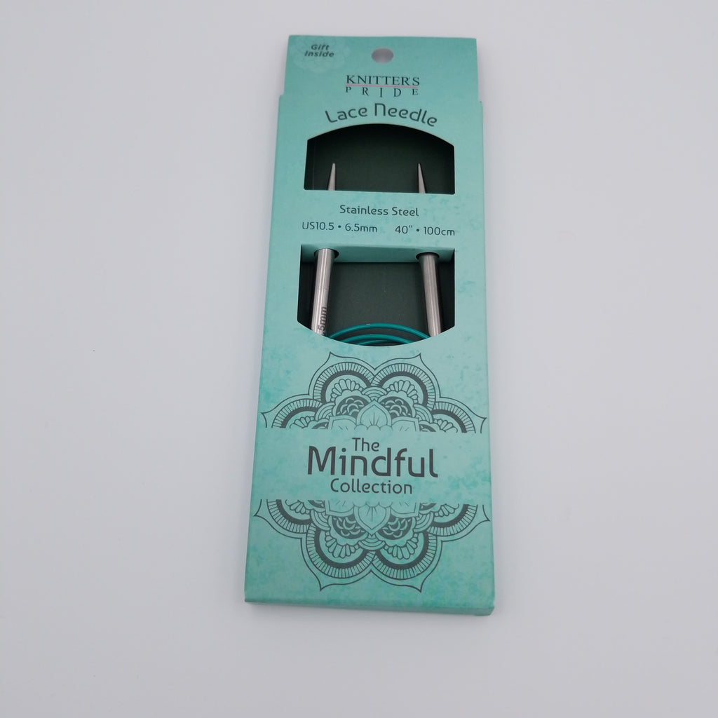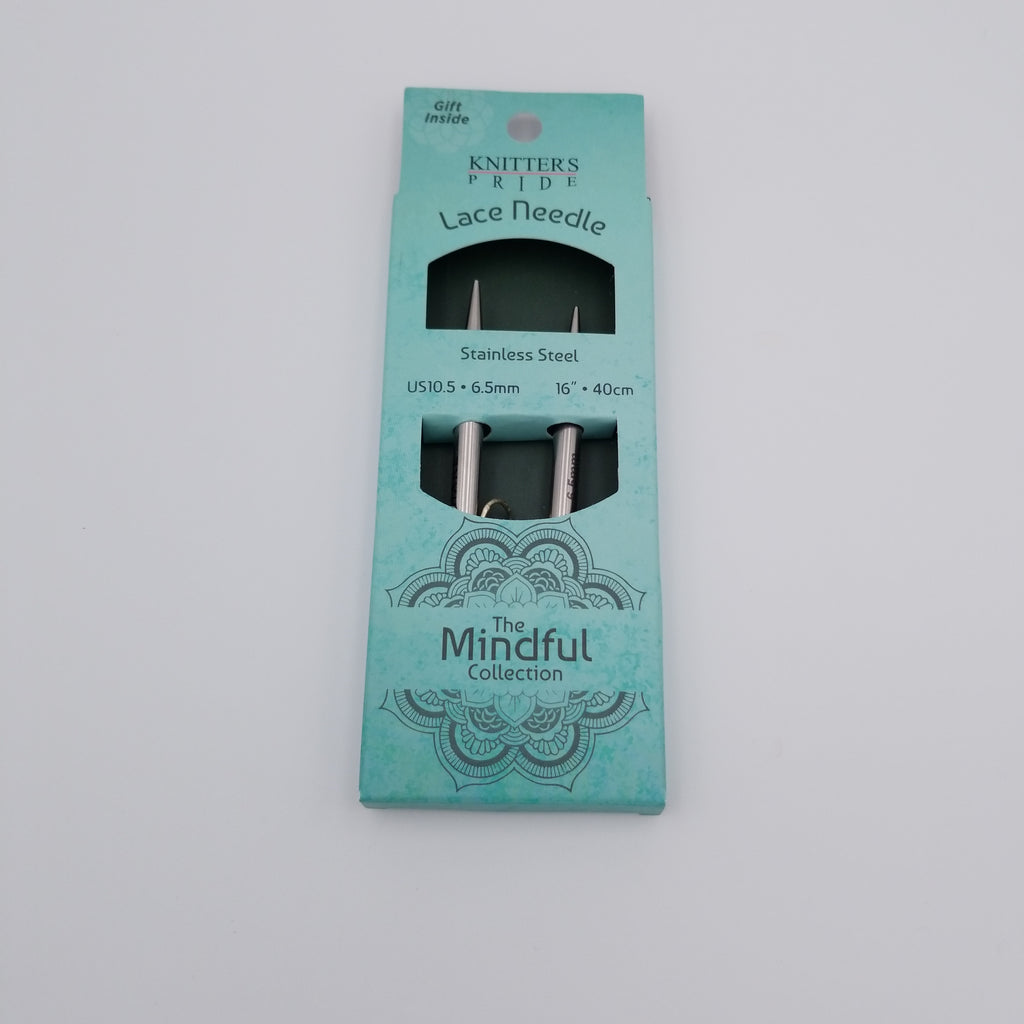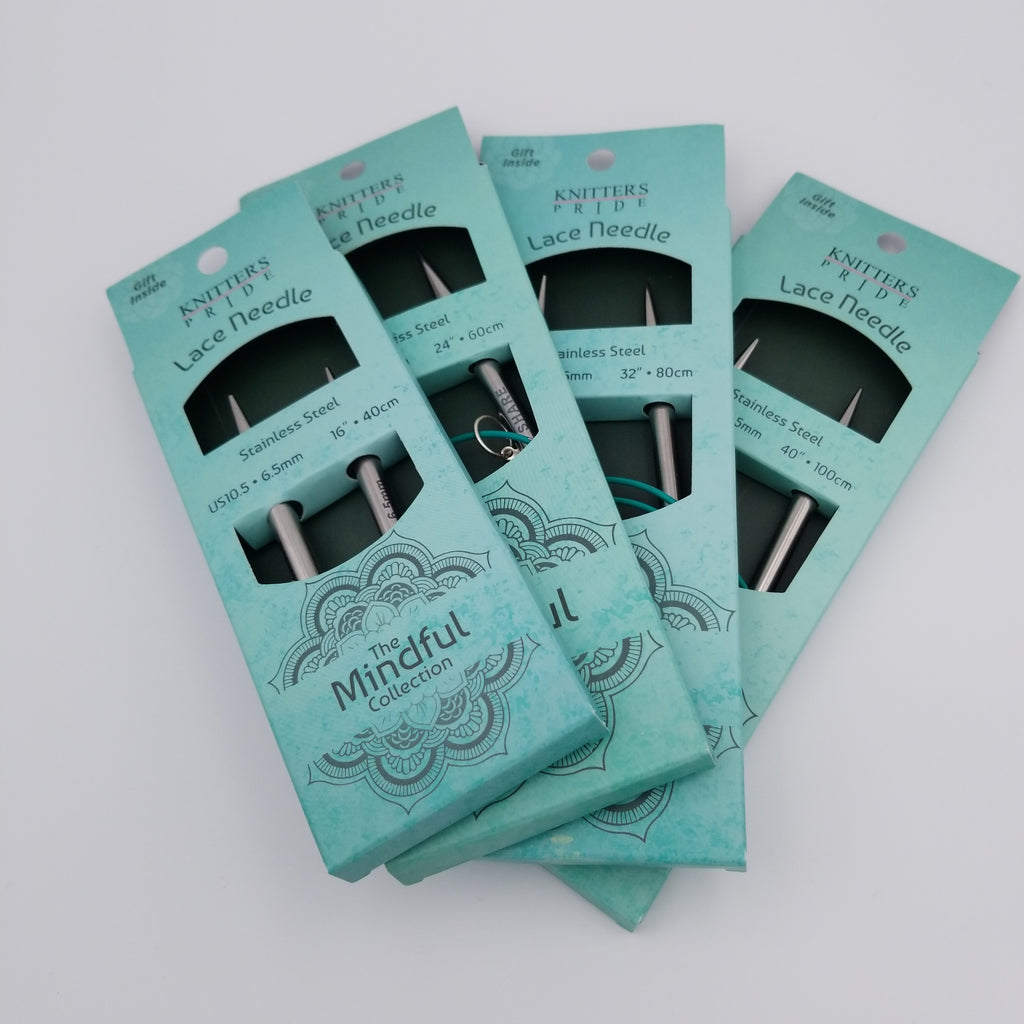 Knitter's Pride pays tribute to the healing art of knitting with The Mindful Collection Lace Needles. Inspirational words, specific to each size, are printed on the needle to encourage focus on the meditative aspect of knitting. Your spirit is soothed and reflected in your work. Made in a family owned enterprise, that supports inclusion and human rights, The Mindful Collection Lace Circular Needles are made of Stainless Steel, in an eco-compliant facility. The fine tips and no-twist glide cord create the perfect flow as you knit.
