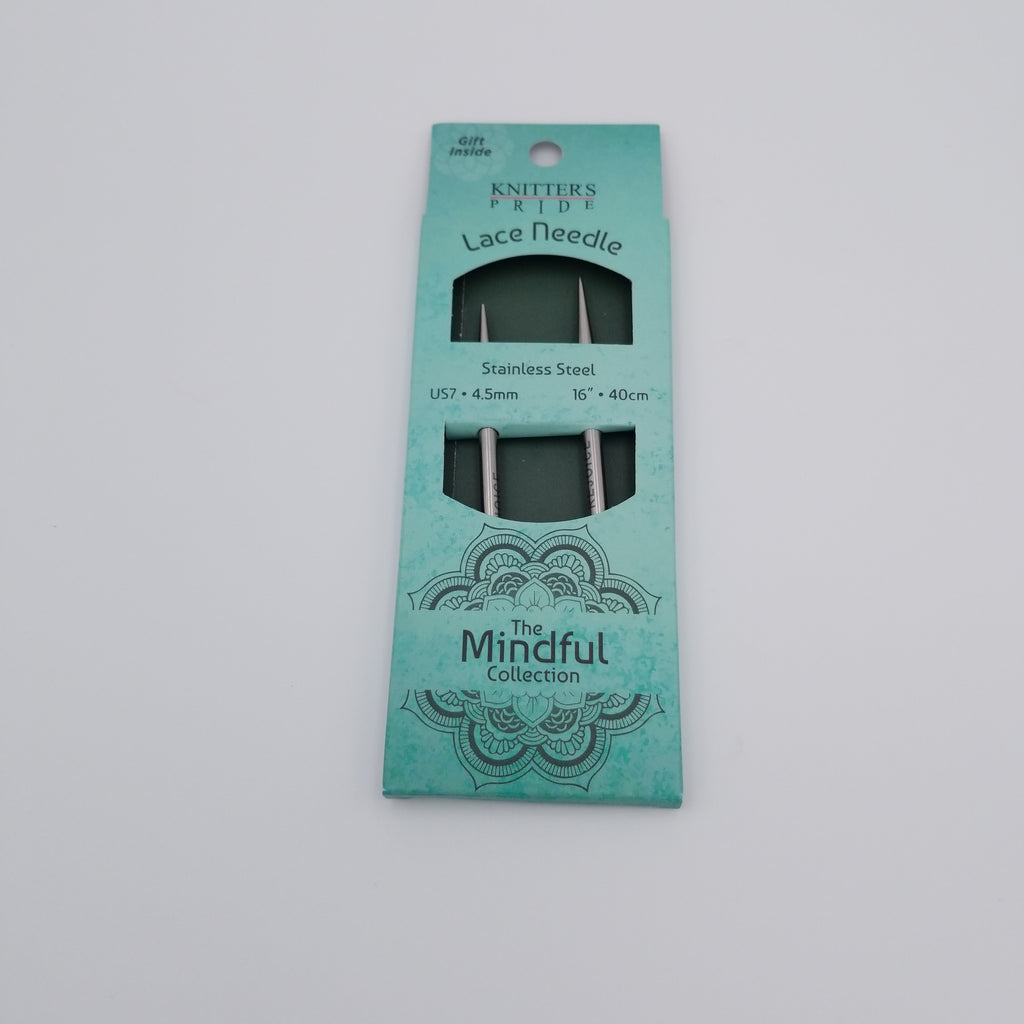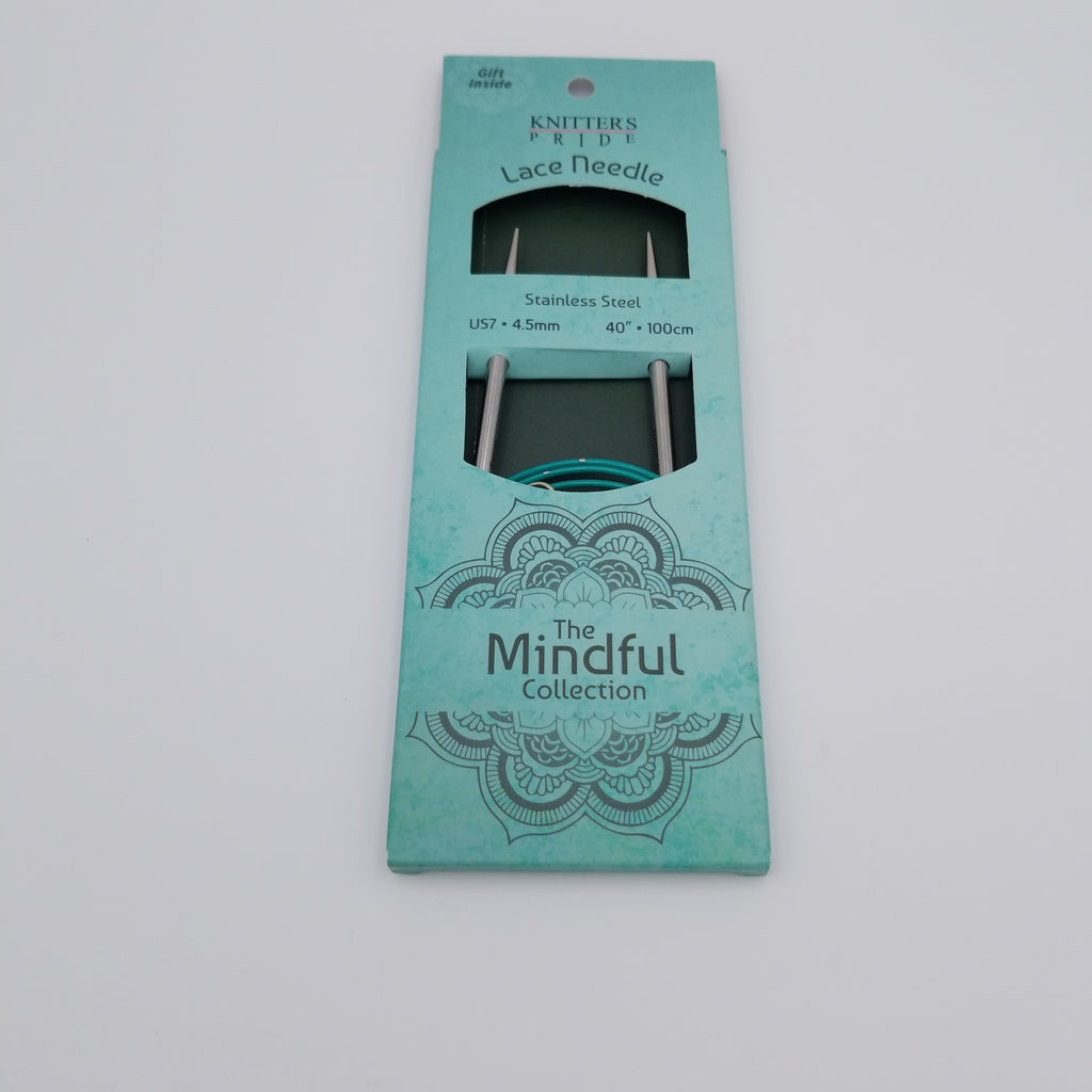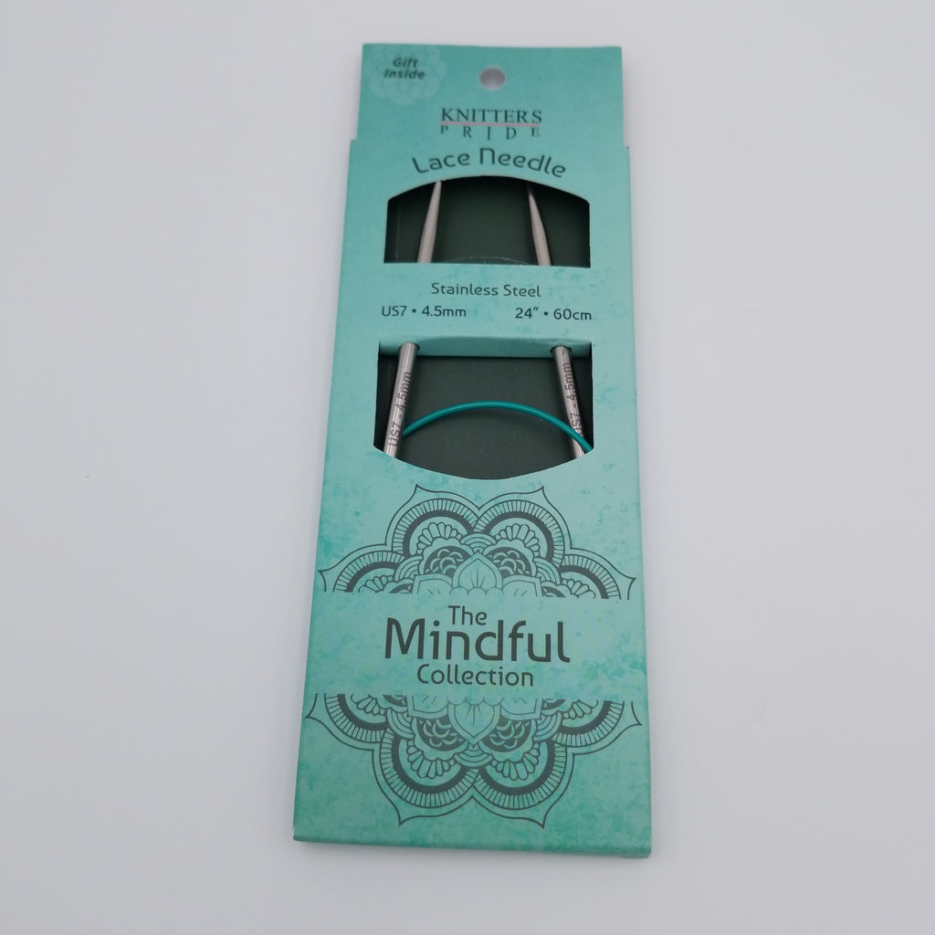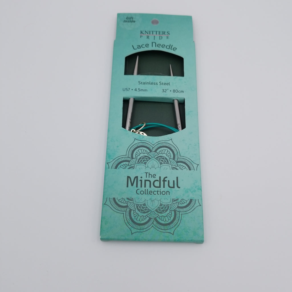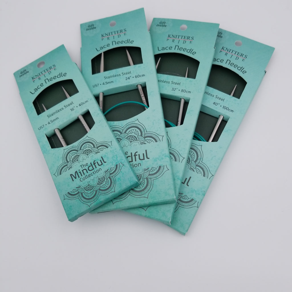 Knitter's Pride pays tribute to the healing art of knitting with The Mindful Collection Lace Needles. Inspirational words, specific to each size, are printed on the needle to encourage focus on the meditative aspect of knitting. Your spirit is soothed and reflected in your work. Made in a family owned enterprise, that supports inclusion and human rights, The Mindful Collection Lace Circular Needles are made of Stainless Steel, in an eco-compliant facility. The fine tips and no-twist glide cord create the perfect flow as you knit.
