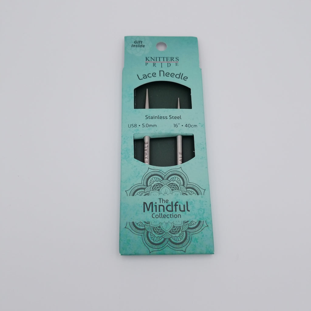 Knitter's Pride pays tribute to the healing art of knitting with The Mindful Collection Lace Needles. Inspirational words, specific to each size, are printed on the needle to encourage focus on the meditative aspect of knitting. Your spirit is soothed and reflected in your work. Made in a family owned enterprise, that supports inclusion and human rights, The Mindful Collection Lace Circular Needles are made of Stainless Steel, in an eco-compliant facility. The fine tips and no-twist glide cord create the perfect flow as you knit.