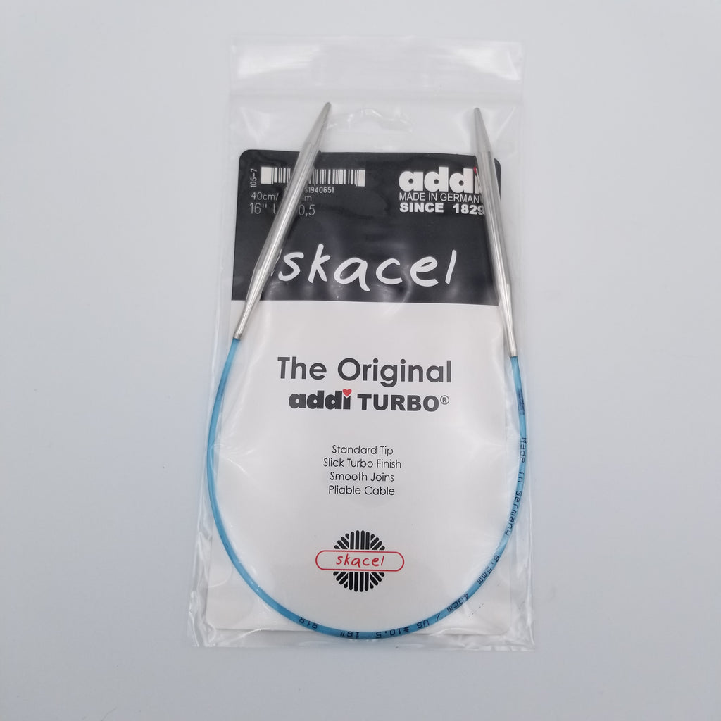 addi Turbos are a marriage of brilliant engineering with every knitter’s dream. addi’s breakthrough design features a hollow brass core that offers strength and very light weight; the turbo plating provides a smooth ride for your stitches; and addi’s cable is the one that raised the bar for everyone – – here at last is a cable that is flexible, strong and never coiled or kinked. No wonder we all love addi’s so much.