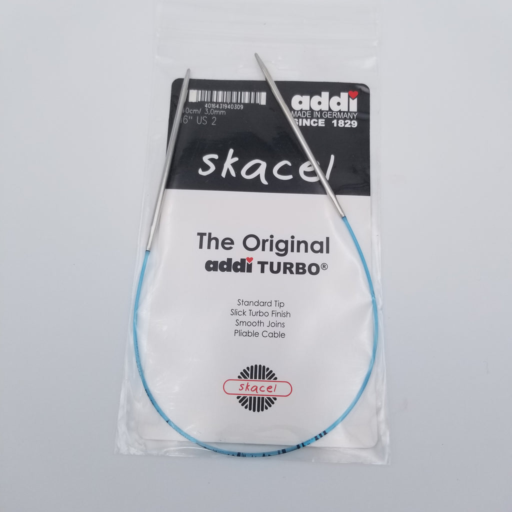 addi Turbos are a marriage of brilliant engineering with every knitter’s dream. addi’s breakthrough design features a hollow brass core that offers strength and very light weight; the turbo plating provides a smooth ride for your stitches; and addi’s cable is the one that raised the bar for everyone – – here at last is a cable that is flexible, strong and never coiled or kinked. No wonder we all love addi’s so much.