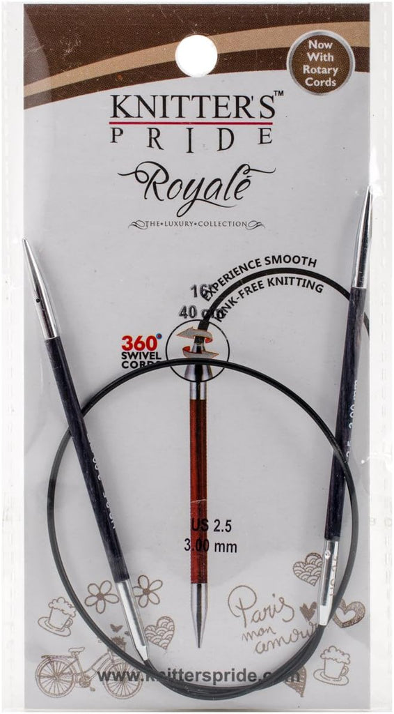 Knitter's Pride Royale fixed circular needles. These needles are ideal for all yarns and every project! The polished warm wood surface works effortlessly with every type of yarn without slowing down knitting rhythm. They provide hours of pleasurable knitting with no hand fatigue.