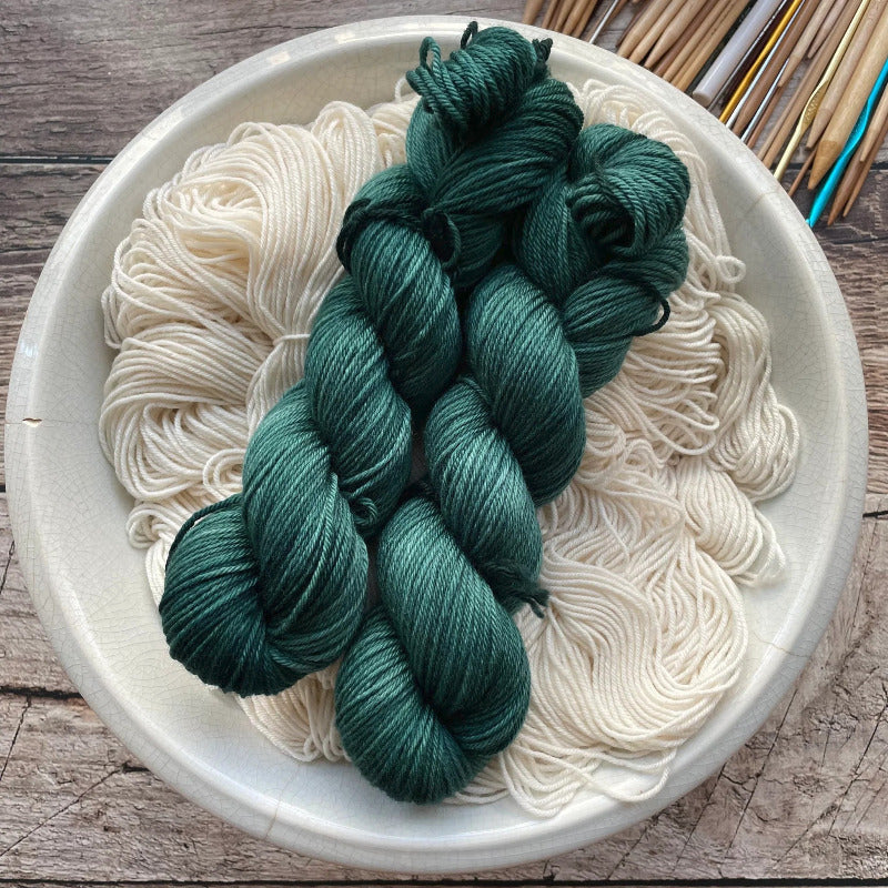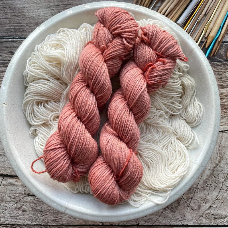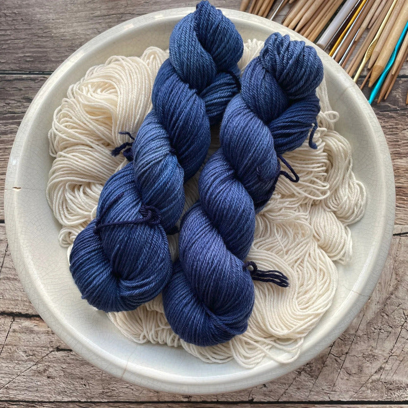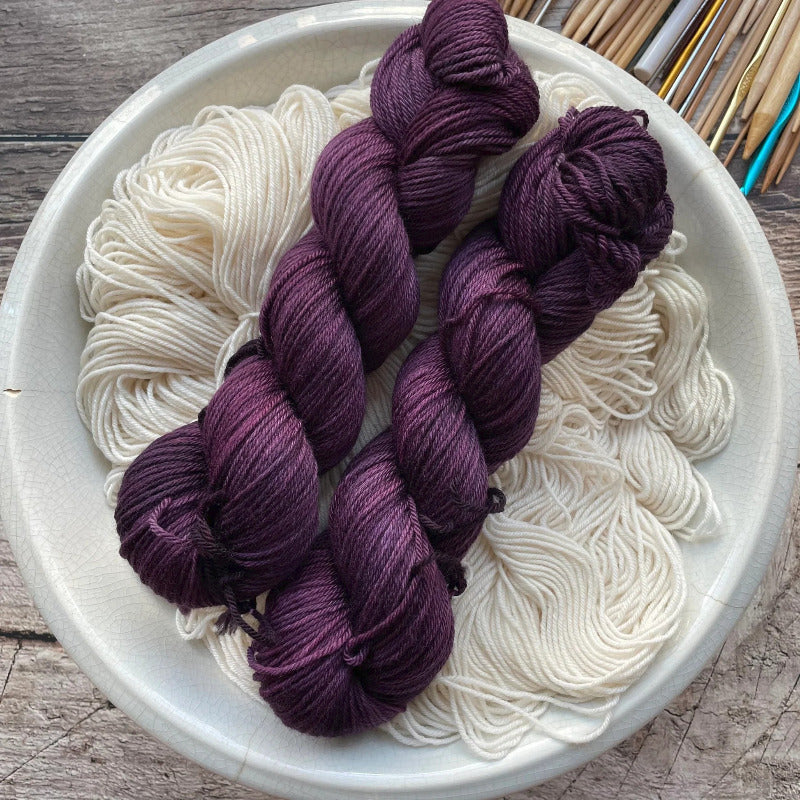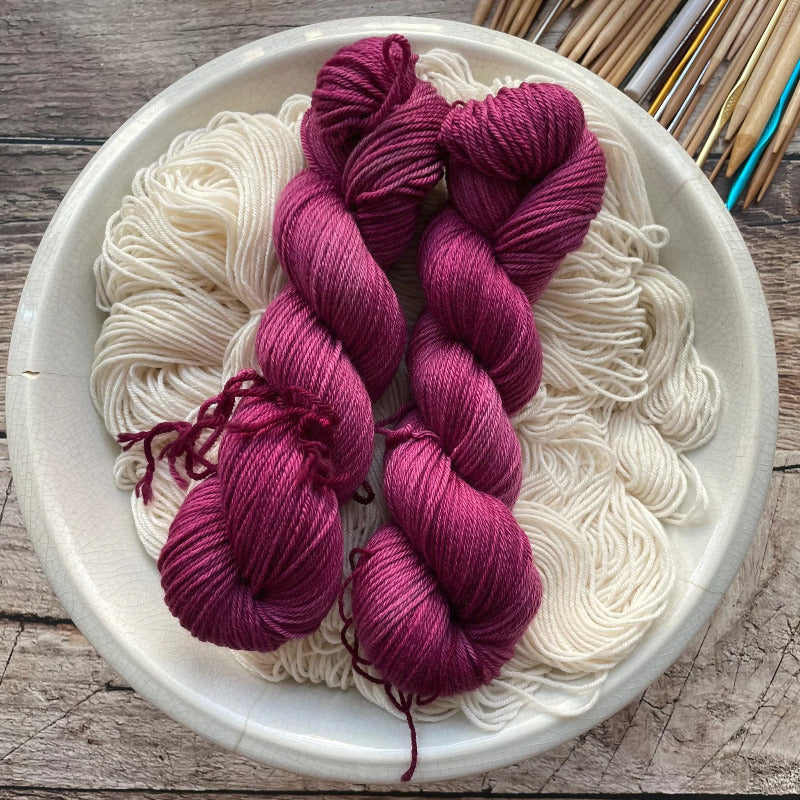 This fiber was handdyed by ontheround using professional quality acid dyes. I dye my yarn in small batches and no skein will be 100% the same- that's what makes working with hand dyed yarn so fun!
