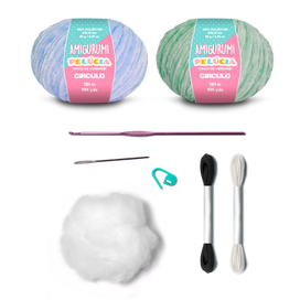 All kits contains: Balls of Amigurumi Pelucia, Skein of Amigurumi, Crochet Hook, Tapestry Needle, Stuffing Fiber, Stitch Locker