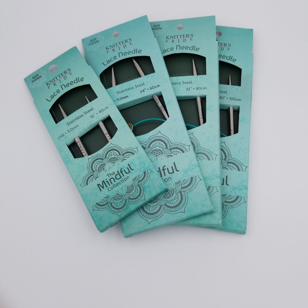 Knitter's Pride pays tribute to the healing art of knitting with The Mindful Collection Lace Needles. Inspirational words, specific to each size, are printed on the needle to encourage focus on the meditative aspect of knitting. Your spirit is soothed and reflected in your work. Made in a family owned enterprise, that supports inclusion and human rights, The Mindful Collection Lace Circular Needles are made of Stainless Steel, in an eco-compliant facility. The fine tips and no-twist glide cord create the perfect flow as you knit.
