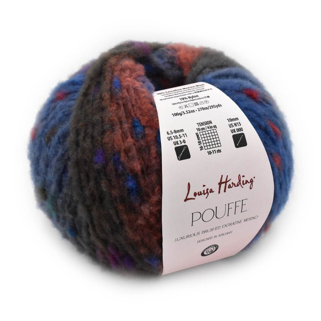 With a retro style, this strikingly beautiful new yarn, Pouffe, from Louisa Harding is a Super Bulky gauge yarn that is light as a puff of air, or a fluffy cloud floating in the sky… and so soft & cuddly, you won't want to take it off! Did I mention instant gratification? It knits up so fast on US 11 or 13 needles, your project will practically knit itself! At a very generous 295 yards per skein, this deliciously soft 90% Extrafine Merino Wool combines with just 10% Polyamide for strength and durability that will not disappoint! Pouffe will cuddle you in warmth, comfort, and softness all season long!